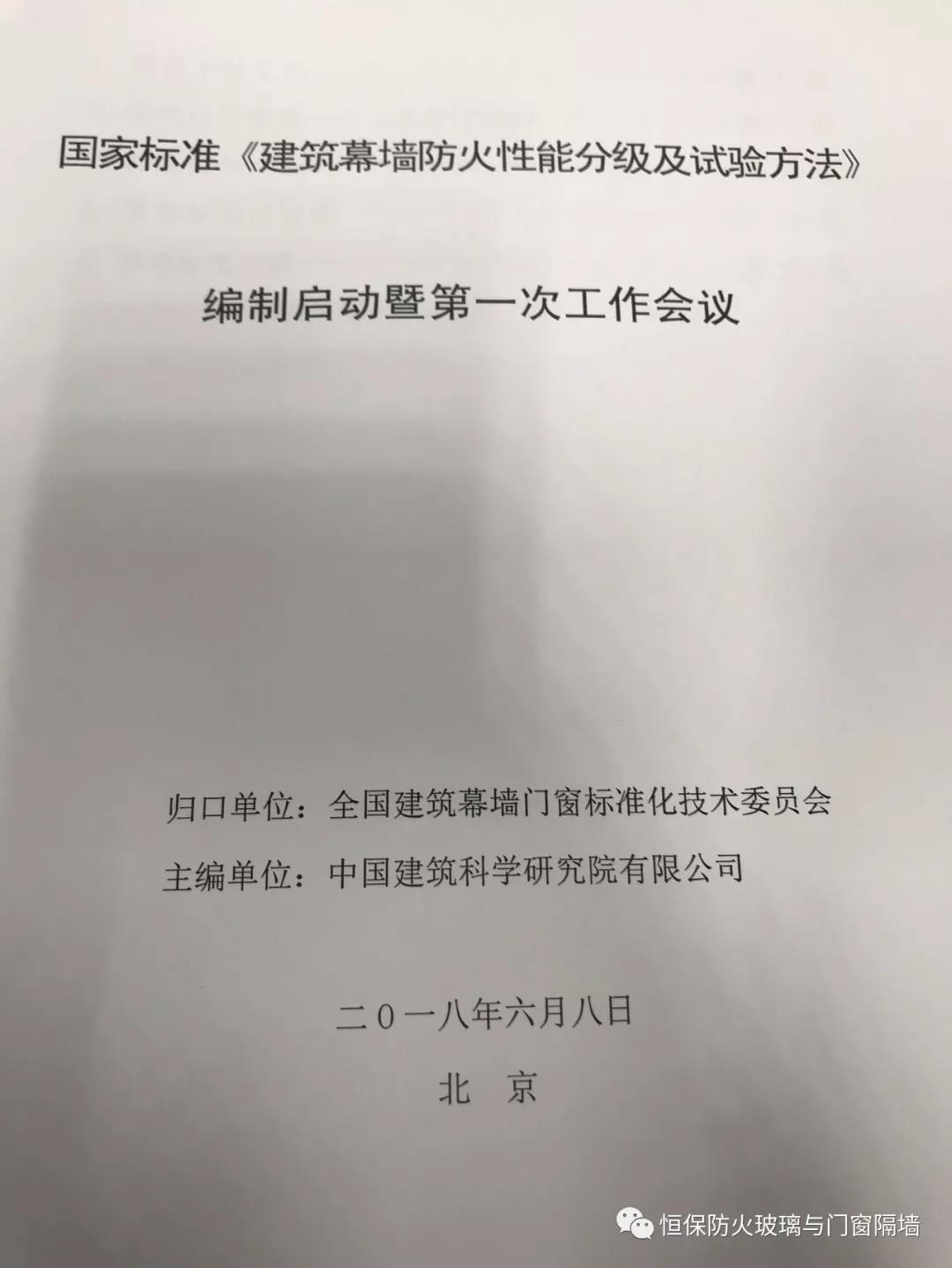 國家標準《建筑幕墻防火性能分級及試驗方法》編制啟動暨首次工作會議在北京召開,恒保應邀參加