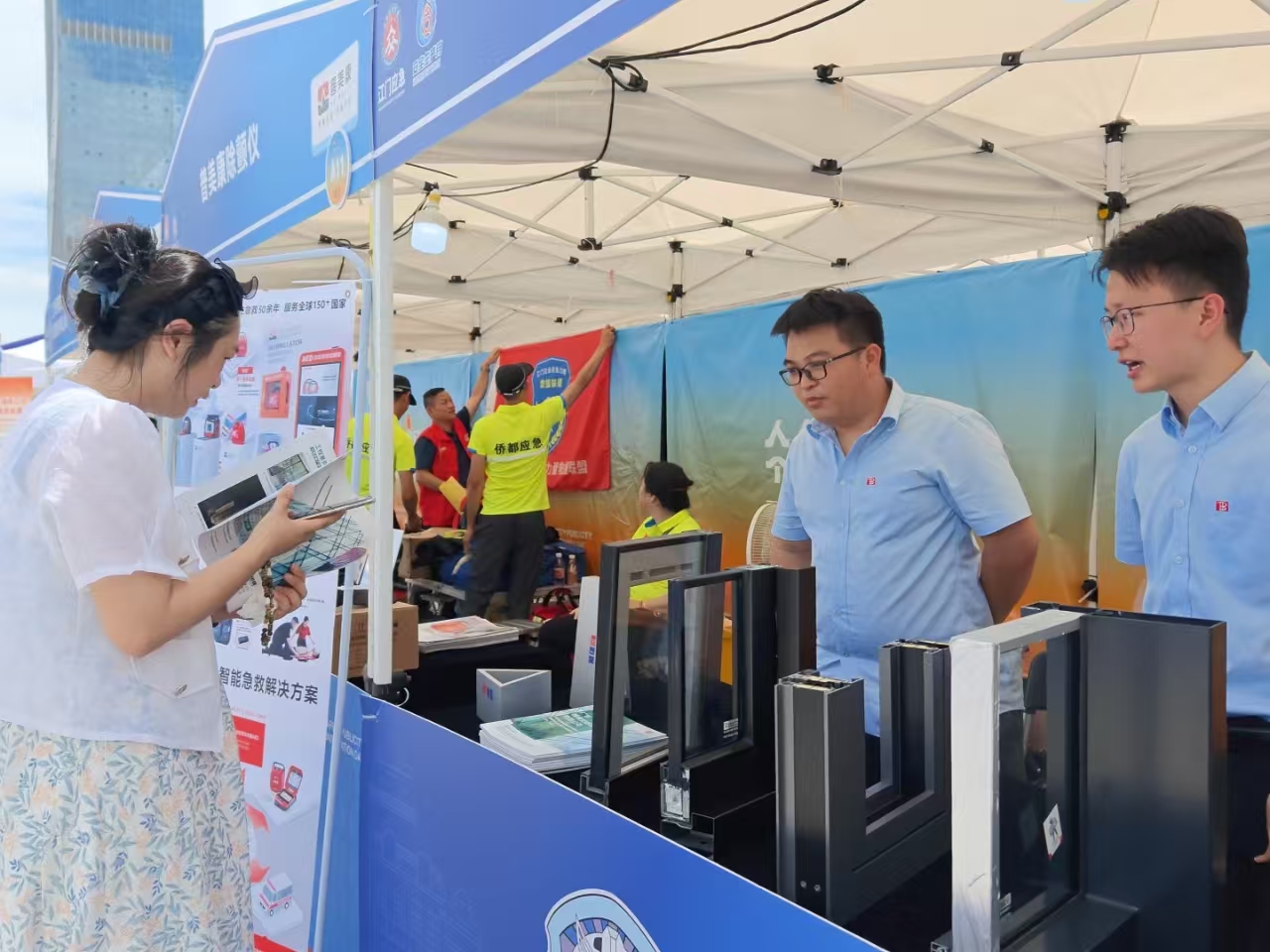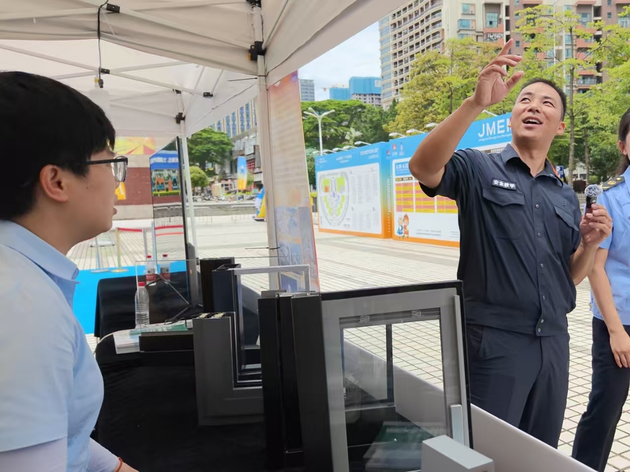 恒保公司精心布置的攤位成為活動現場的熱門打卡點,一塊塊防火玻璃產品樣角整齊陳列,吸引了眾多市民和領導駐足。這些樣角不僅是產品的展示,更是公司技術實力與匠心工藝的縮影。同時,業務經理結合實際生活場景,為大家分享了如何根據不同需求選擇合適的防火玻璃門窗幕墻產品,讓在場的每一個人都收獲滿滿。透過通透的玻璃,人們可以直觀感受到產品精細的制作工藝,以及獨特的防火結構設計。不少市民湊近觀察,用手觸摸感受玻璃質感,對產品表現出濃厚的興趣。