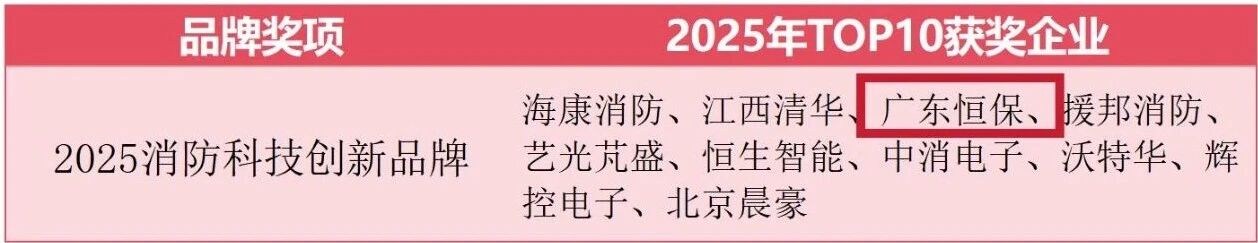 在消防行業創新浪潮與技術變革的關鍵節點,恒保公司憑借深厚的技術積累與前瞻性的研發布局,在眾多企業中脫穎而出,榮獲 “2025 消防科技創新品牌” 獎項。