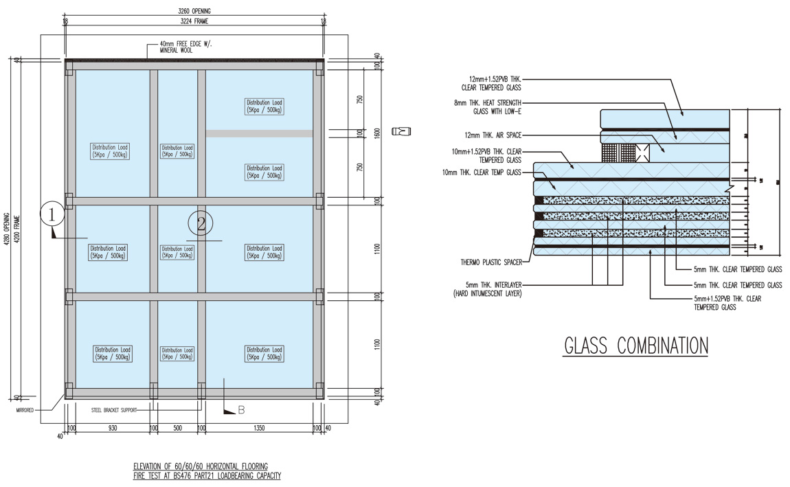 ★ 承重防火地臺(tái),天頂玻璃的測(cè)試